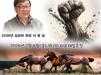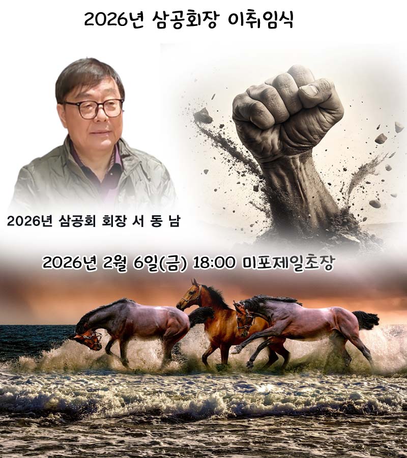 삼공회 2026년 회장 이취임식 김작지30회 0 6 01.25 08:02 삼공회 2026년 회장 이취임식 일시: 2026년2월6일(금)장소: 미포 제일초장 (방파제입구에서 65m)주소; 부산 해운대구 달맞이길62번길 53 051-743-5991