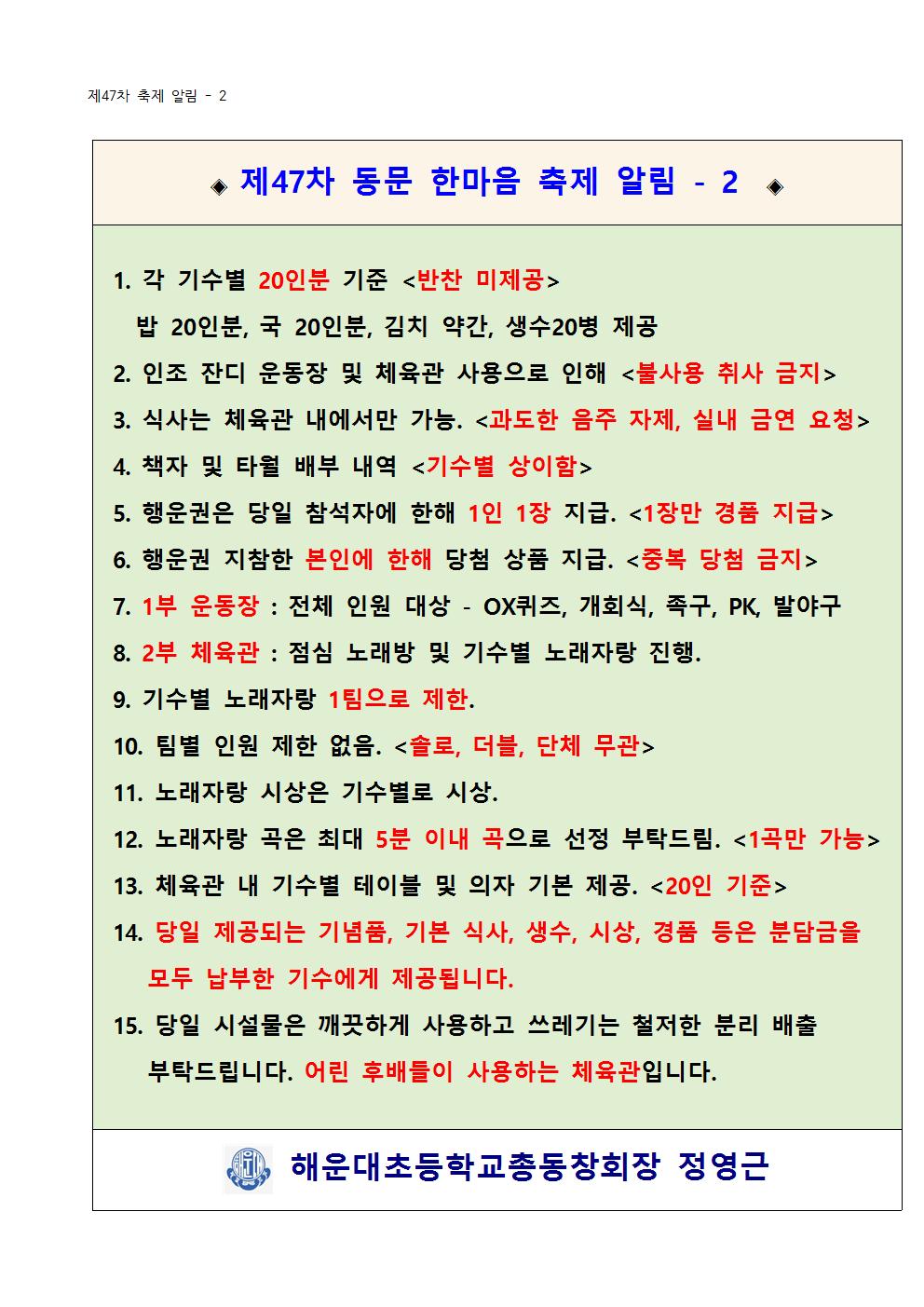 2025 하반기 이사회 결과공지및 제 47차 동문 한마음 축제