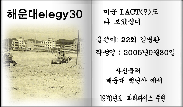 그 때 해운대 바닷가는 시멘트 옹벽도 없었고 해수욕장은 마을에서 개울을 건너