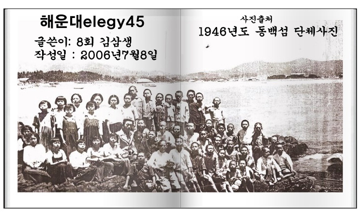 ※ 사진 1: 지금부터 꼭 60년 전(1946 .7. 12)의 해운대 모습 : 동백섬에서 찍었고, 배경
